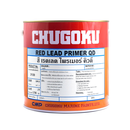 1.รองพื้นสีน้ำมันกันสนิม ชูโกกุ เรดลีด ไพรเมอร์ คิวดี Chugoku Red Lead Primer QD 2.รองพื้นกันสนิมชนิดมีส่วนผสมของตะกั่วแดง 3.ให้คุณสมบัติในการกันสนิมอย่างมีประสิทธิภาพ 4.แห้งเร็วและทนต่อแรงกระแทกและการขัดถูได้ดี