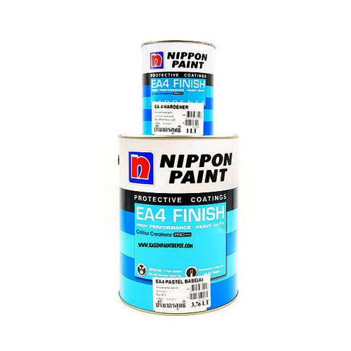 สีอีเอ4 ฟินิช BasePastel/a 5L. A+B เงา NIPPON เป็นสีอีพ็อกซี่ชั้นสุดท้ายชนิดเงาสูง ใช้เป็นสีทับหน้าในระบบสีอีพ็อกซี่เหมาะสำหรับการใช้งานภายในหรือบริเวณที่ไม่ได้โดนแดดต่อเนื่อง สามารถใช้ได้บนพื้นผิวเหล็ก ไม้และคอนกรีต หลังลงรองพื้นที่ถูกต้องตามระบบแล้ว ทนความร้อนแห้งพื้นผิวได้สูงสุดถึง 100 องศาเซลเซียสด้วย