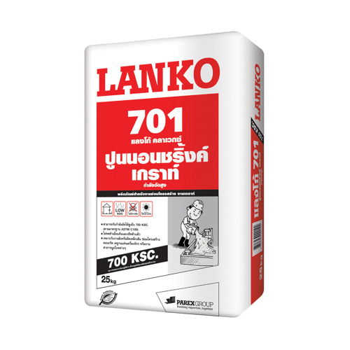 LANKO CLAVEX 701 25กก.ซีเมนต์ไฮดรอลิกเกร้าท์ ชนิดไม่หดตัว ที่ประกอบไปด้วยปูนซีเมนต์และสารเคมีพิเศษที่มีประสิทธิภาพในการไหลเข้าช่องว่างได้ง่ายตามการออกแบบของหลักวิศวกรรม เมื่อแห้งแข็งตัวแล้วจะไม่หดตัว สามารถเลือกใช้งานได้ตามความเหมาะสมของหน้างาน