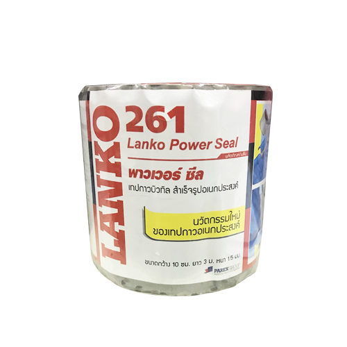 LANKO Power Seal 261 10ซม*3ม.LANKO เทปกาวบิวทิล สำหรับปิดรอยต่อ รุ่น 261 ขนาด 10 ซม. x 3 ม. สีดำ เทปกาวอเนกประสงค์ มีแรงยืดเกาะสูง ใช้ปิดรอยต่อ รอยแตกร้าว ป้องกันการรั่วซึมของน้ำได้ดี ใช้ได้หลากหลายทุกพื้นผิว ทนทานต่อแดดและอุณหภูมิที่เปลี่ยนแปลงได้ดี สามารถยึกเกาะได้ดีกับพื้นผิวหลายประเภท ทนทานต่อแสงแดด และแสง UVได้ดี สามารถทาสีทับได้ มีแถบกาวในตัว ใช้งานง่าย สะดวก รวดเร็ว